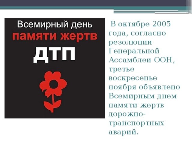 СкачатьВсемирный день памяти жертв дорожно-транспортных происшествий