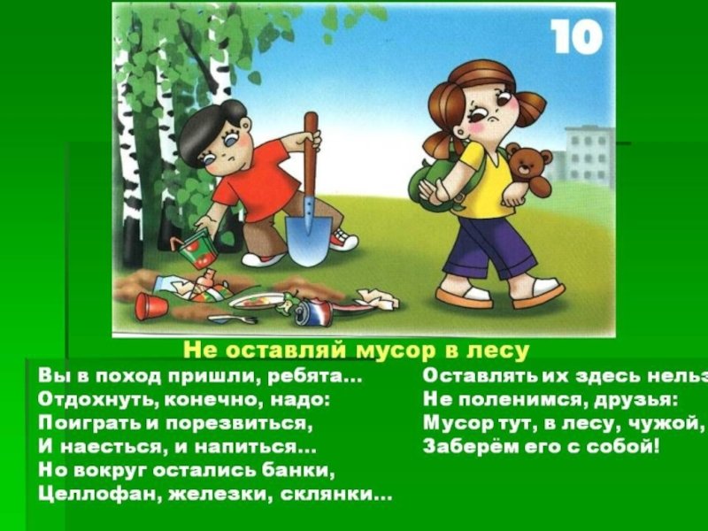 Нельзя мусорить в лесу для детей