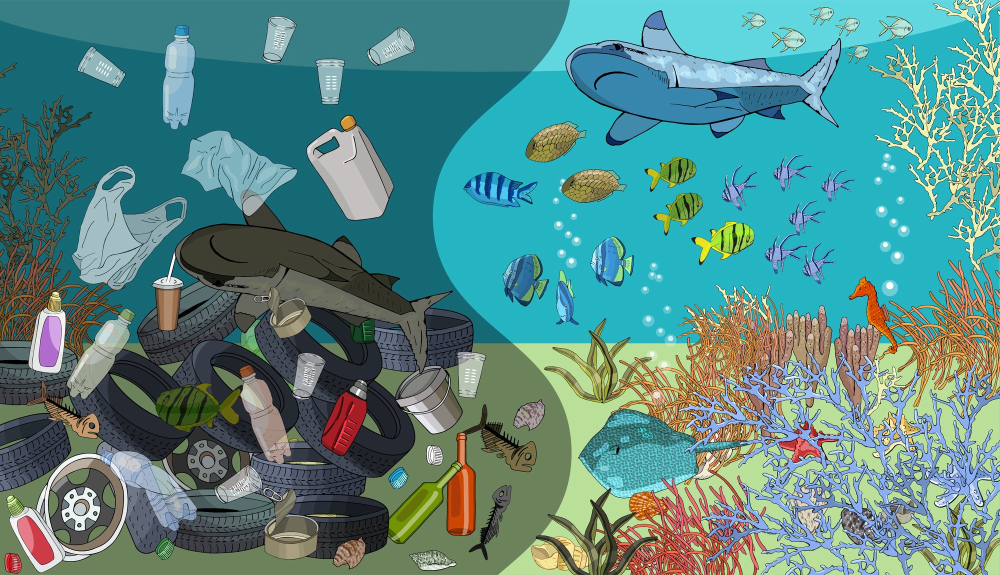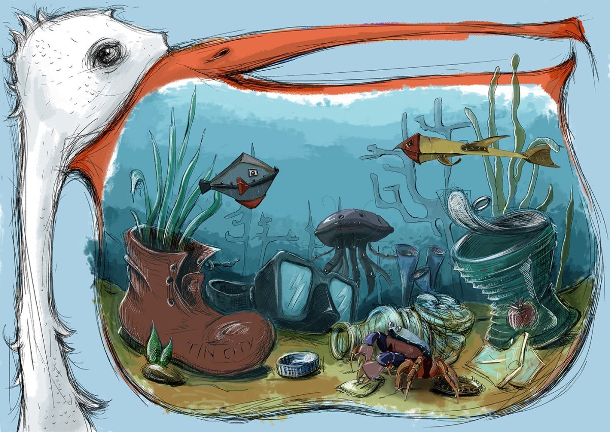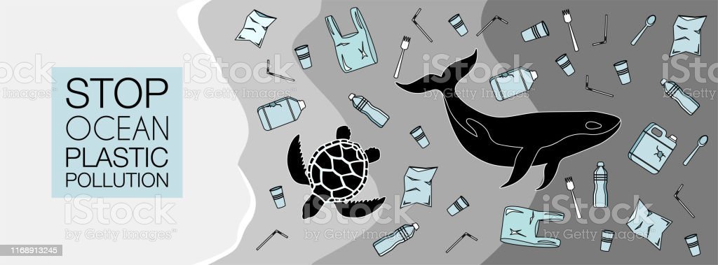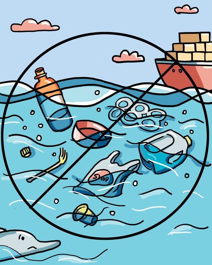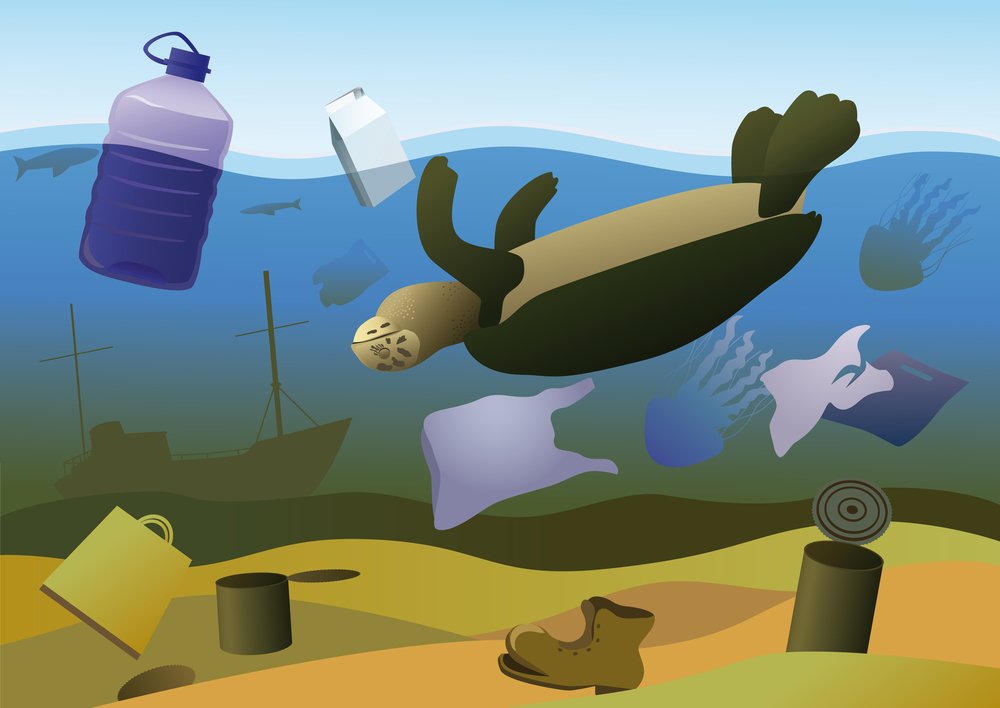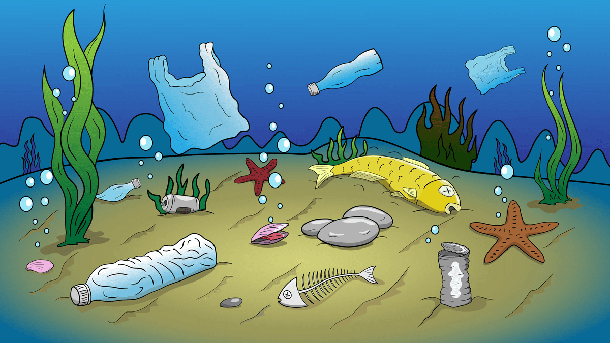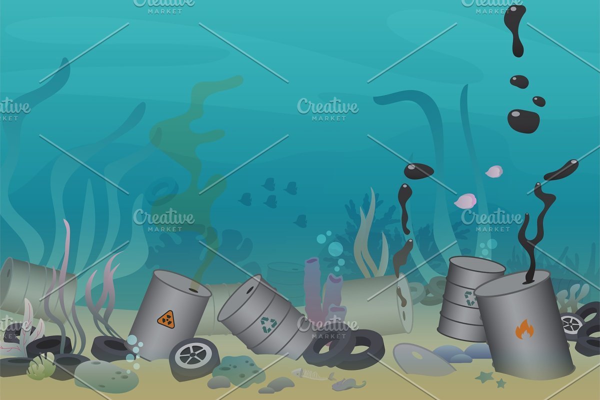 ![Мультяшный мусор в воде]()