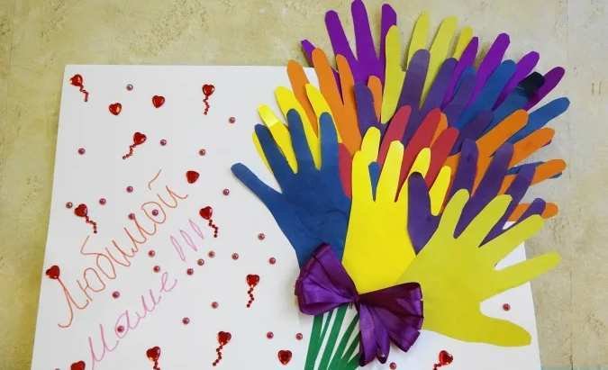 Плакат из ладошек - идеальный подарок ко дню матери, который точно вызовет улыбку и радость у твоей самой любимой женщины. Этот оригинальный аксессуар выполнен в виде двух рук, сложенных в форме сердца, символизирующего безусловную любовь и благодарность к маме. Яркие цвета плаката привлекают внимание, а надпись "Спасибо, мама!" напоминает о значимости ее роли в нашей жизни. Подарив этот плакат, ты можешь выразить свою глубокую признательность и показать, как сильно ты ценишь и любишь свою маму.