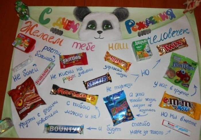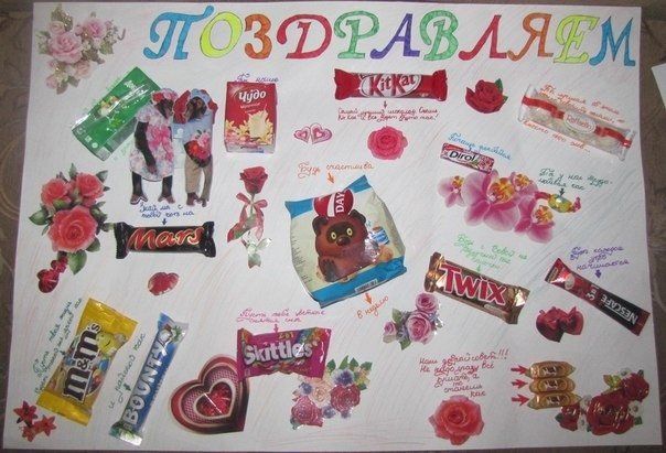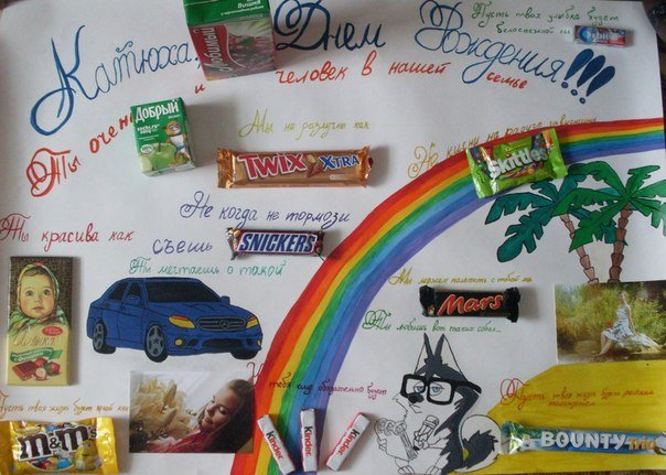 ![Плакат подруге на др со сладостями]()