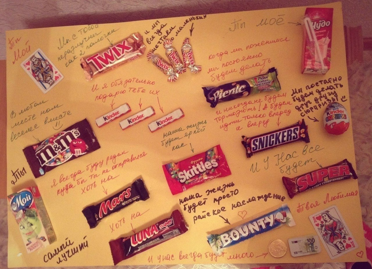 ![Плакат подруге на др с шоколадками]()