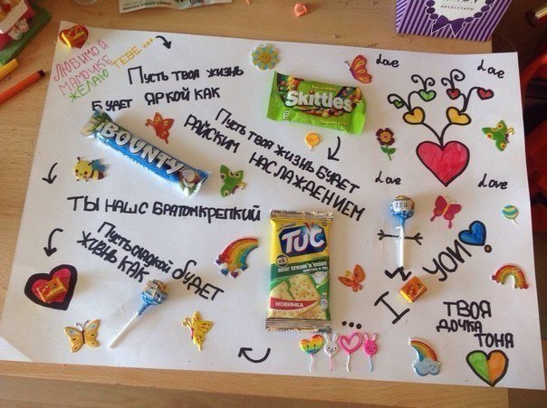 ![Плакат со сладостями маме]()