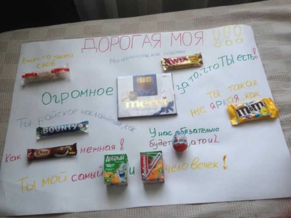 ![Плакат с днём рождения мужу и папе шоколадками]()
