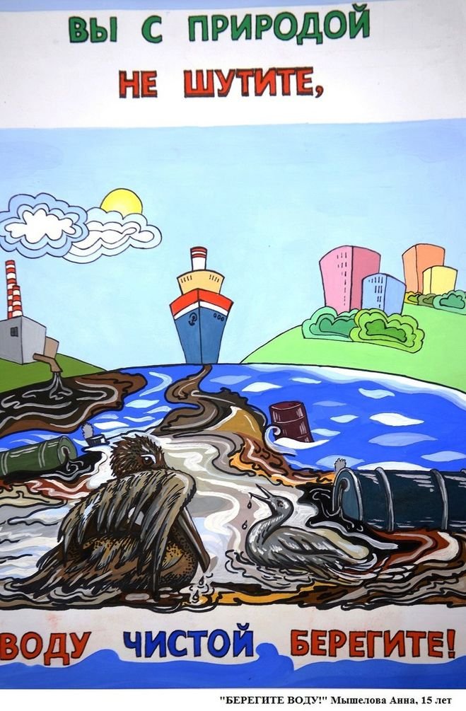 ![Экологический плакат на тему вода]()