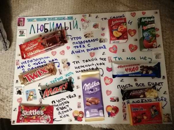 Хотите порадовать любимого мужчину в его особый день рождения и ищете необычный и сладкий подарок? Предлагаем вам уникальную идею - плакат из шоколада! Этот оригинальный подарок не только украсит интерьер, но и порадует вашего мужчину своим нежным вкусом. Вы можете выбрать различные формы и размеры плаката, а также добавить на него поздравительное сообщение или фотографию. Такой подарок будет явно выделяться среди других и запомнится на долгое время, оставляя приятные воспоминания. Не упустите возможность сделать день рождения вашего мужчины по-настоящему сладким и запоминающимся!