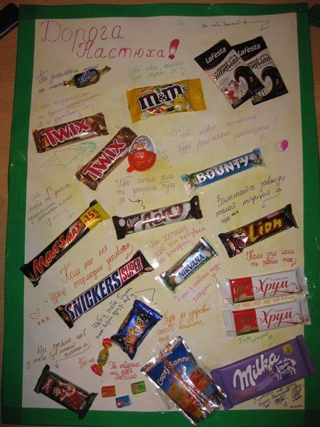 Оригинальный и яркий плакат со сладостями - отличный подарок на день рождения для дочки 8 лет! На этом праздничном плакате можно изобразить самые любимые сладости малышки: пирожные, конфеты, шоколадки и многое другое. Яркие цвета и игривый дизайн плаката точно понравятся ребенку и добавят атмосферу веселья на празднике. Этот подарок не только сделает день рождения еще более запоминающимся, но и станет отличным украшением в комнате девочки. Дарите радость своей дочери с помощью этого замечательного плаката!
