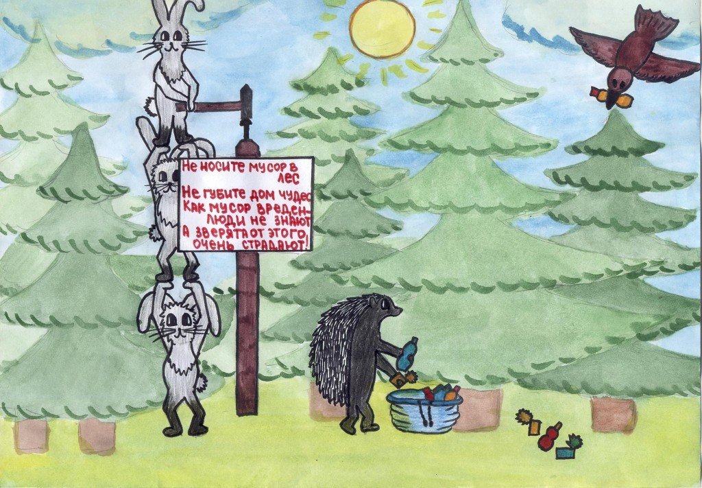 ![Рисунок не мусорить в лесу]()