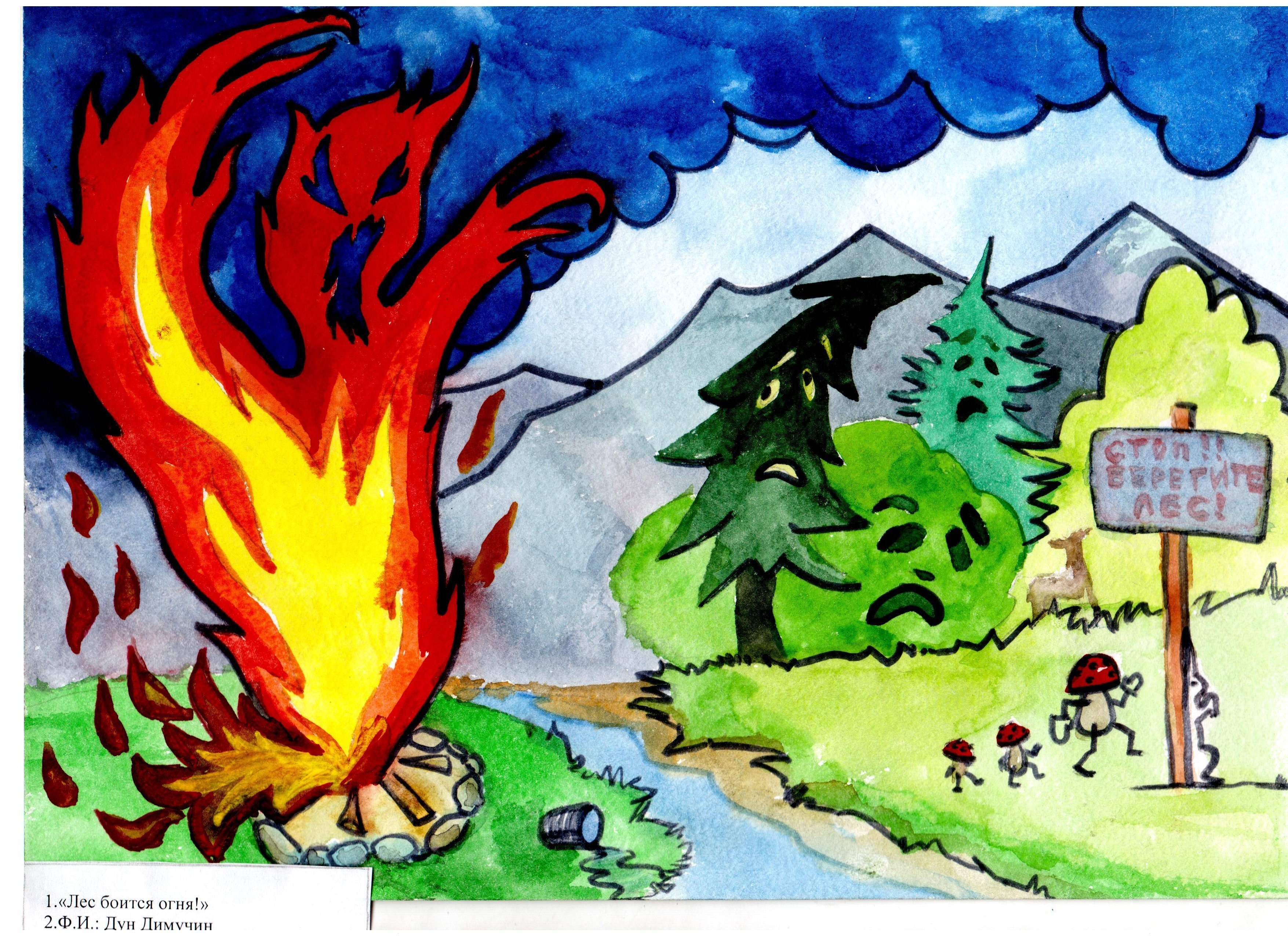Рисунок на тему берегите лес от пожара