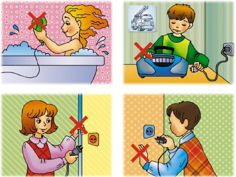 ![Нельзя прикасаться к включенным электроприборам мокрыми руками!]()