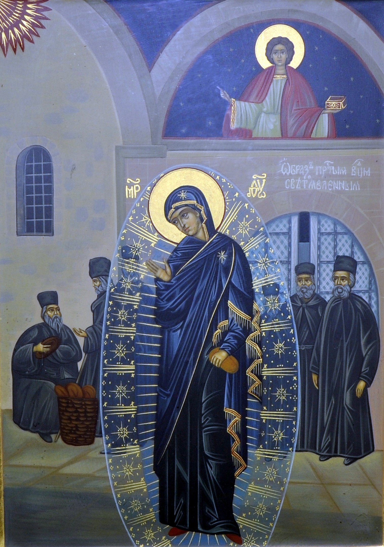 ![Светописанный образ Пресвятой Богородицы в русском на Афоне]()