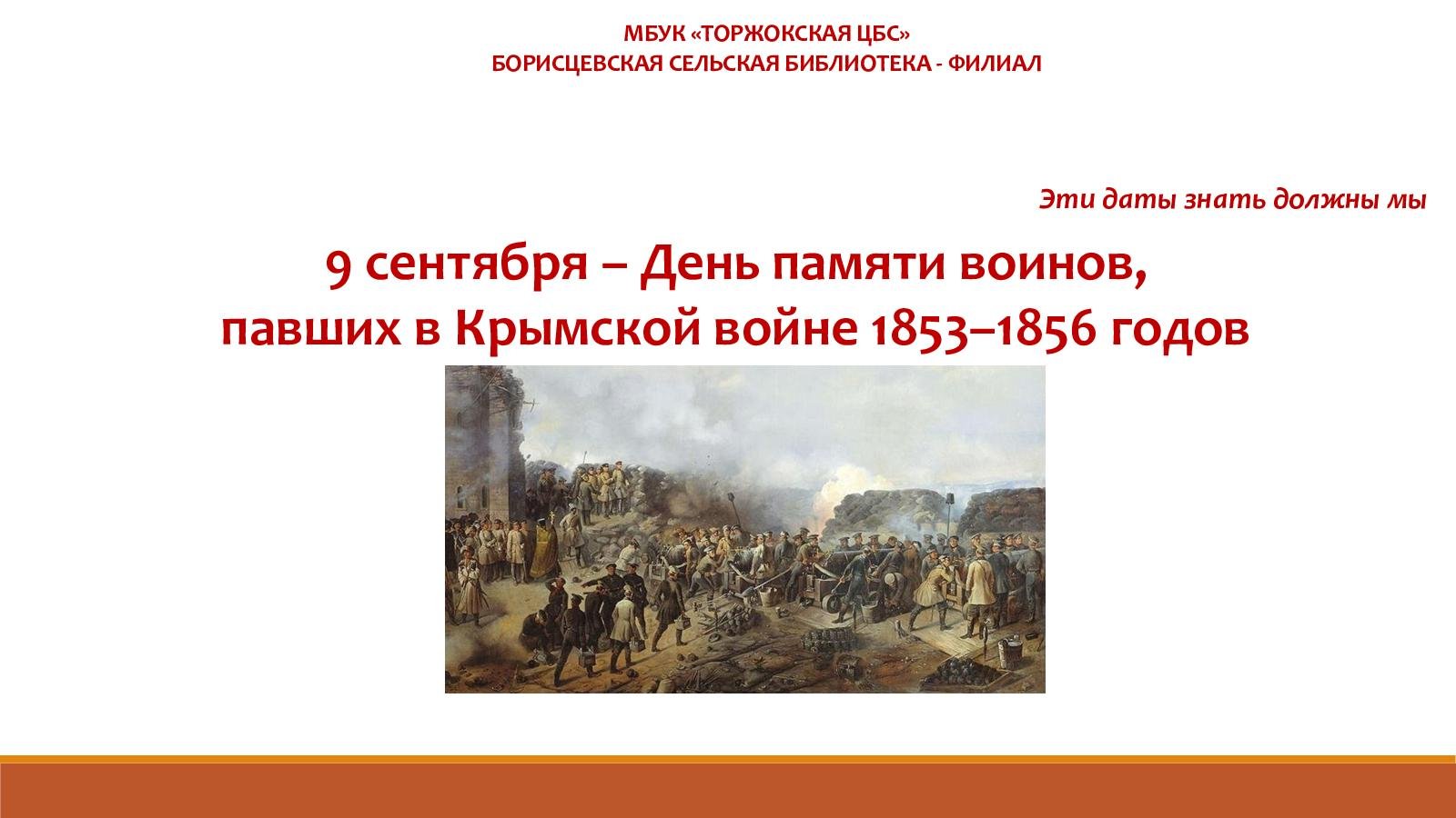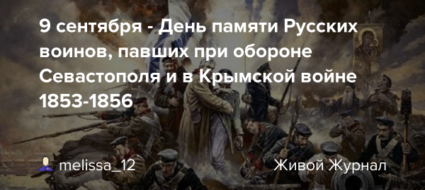 9 Сентября день памяти воинов павших в Крымской войне 1853 1856 годов