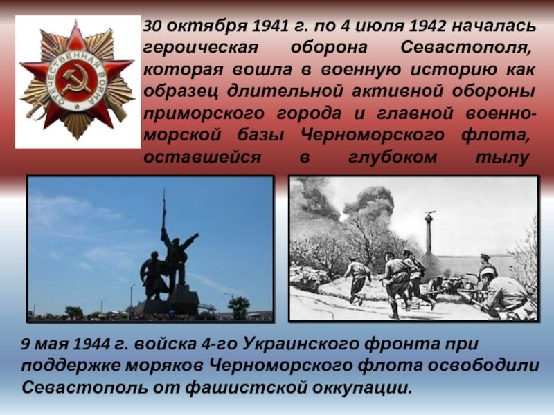 ![30 Октября 1941 г 4 июля 1942 г Героическая оборона г Севастополя]()