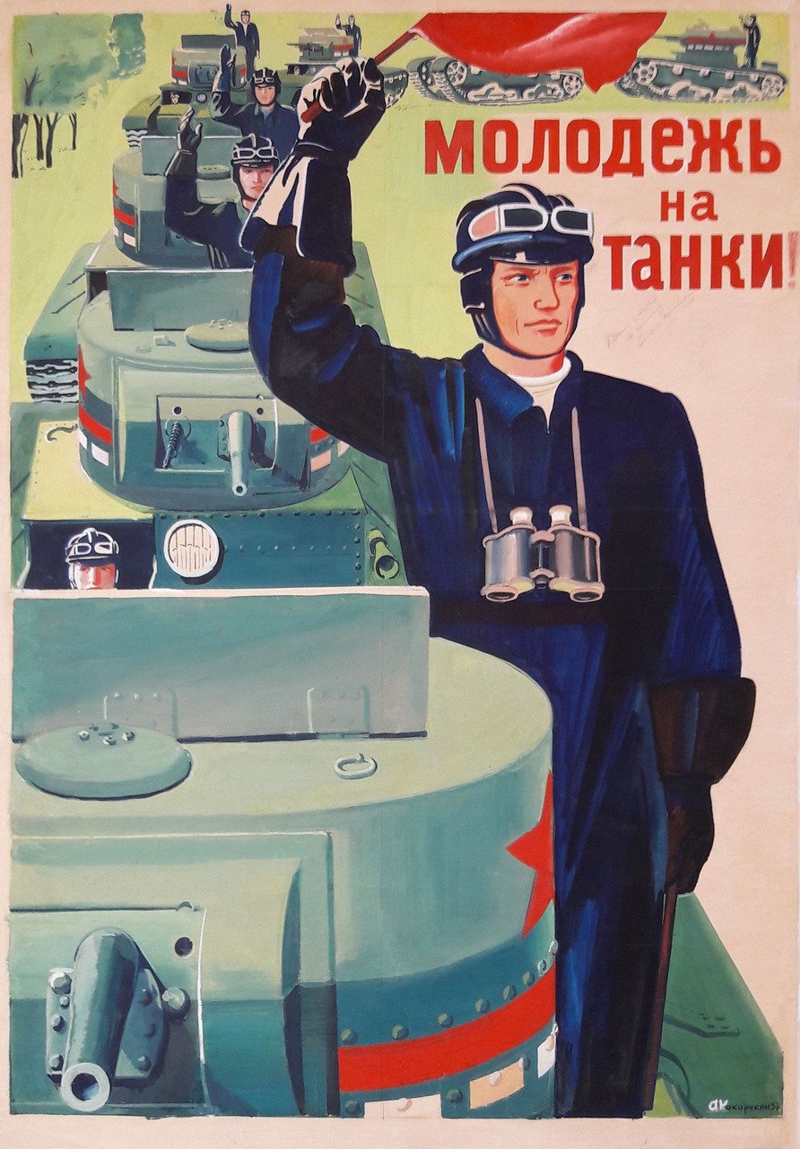 ![Танкист плакат СССР]()