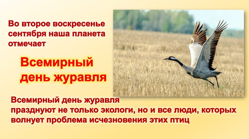 Плакаты Всемирный день журавля - это яркое и эмоциональное визуальное представление о международном празднике, посвященном птице-символу мира. Они не только привлекательно выглядят, но и передают главную идею этого праздника - желание мира, свободы и гармонии. На плакатах можно увидеть изображения журавлей различных видов, символические элементы, такие как оливковая ветвь или планета Земля, а также мотивационные фразы и призывы к мирному сосуществованию. Плакаты Всемирный день журавля являются отличным способом привлечь внимание к важности сохранения мира и сплочению народов вокруг общих ценностей.