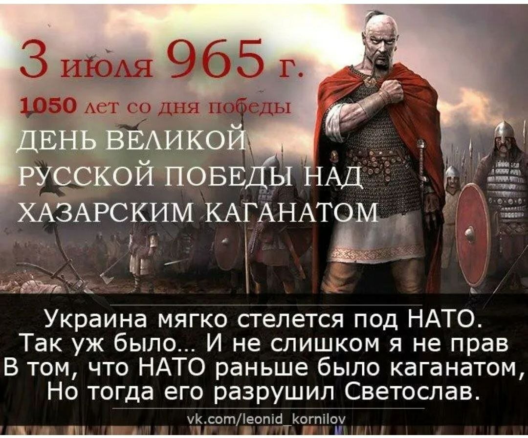 ![3 Июля 964 года день Великой русской Победы над Хазарским каганатом]()