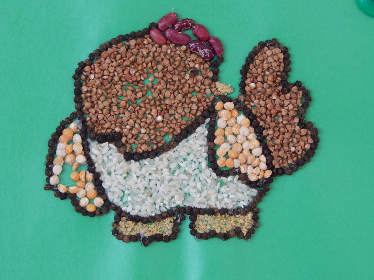 ![Аппликация из гречки]()