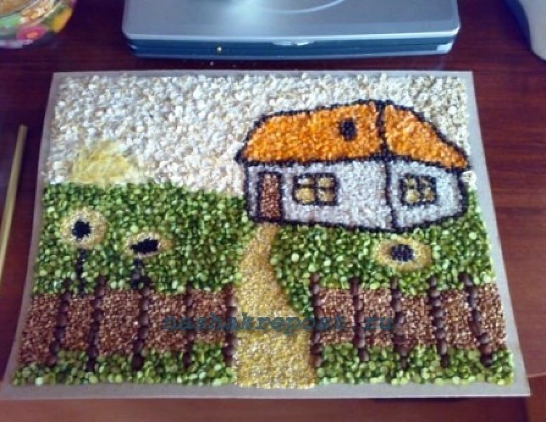 ![Аппликация из гречки и пшена]()