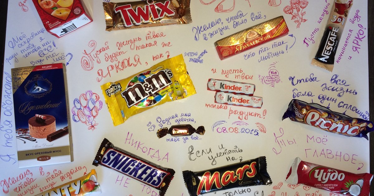 Пожелания на плакате со сладостями