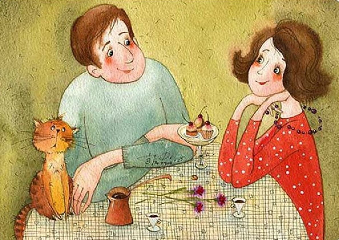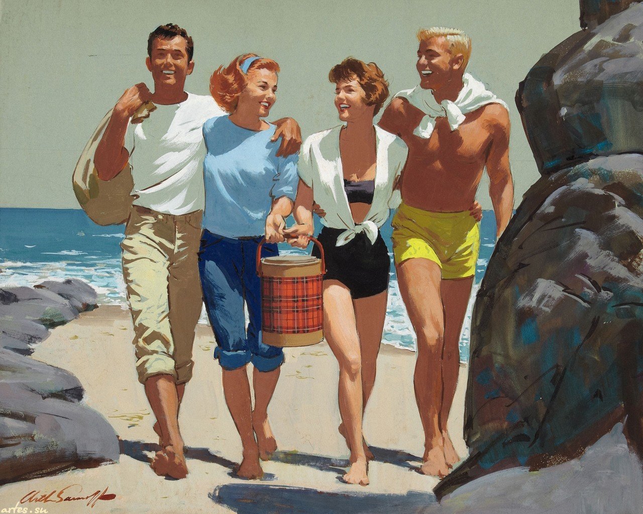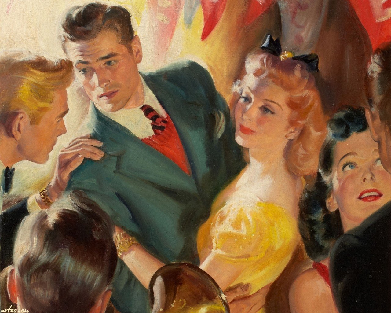 ![Ретро иллюстрации с мужчиной и женщиной]()
