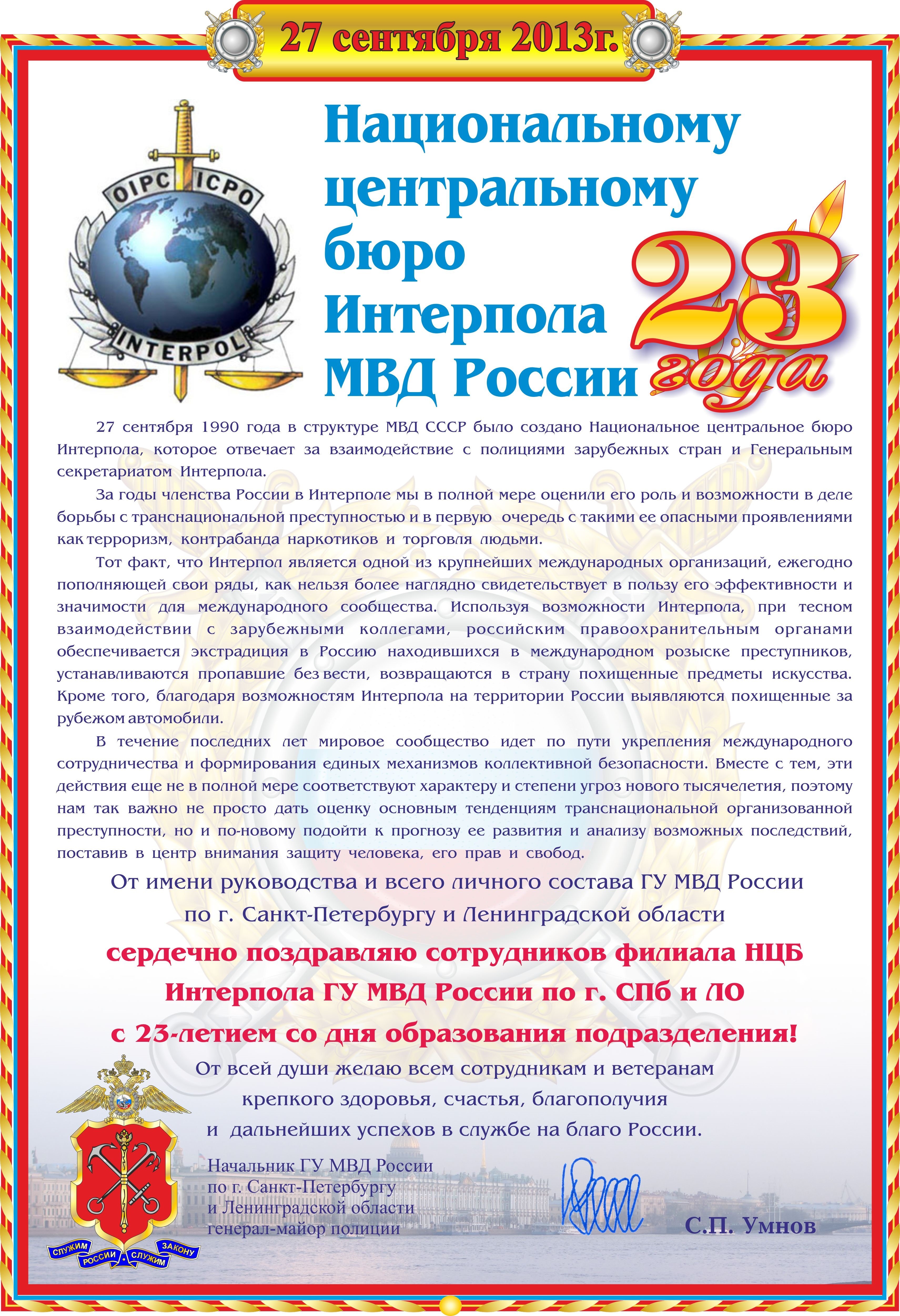 27 Сентября день образования НЦБ Интерпола