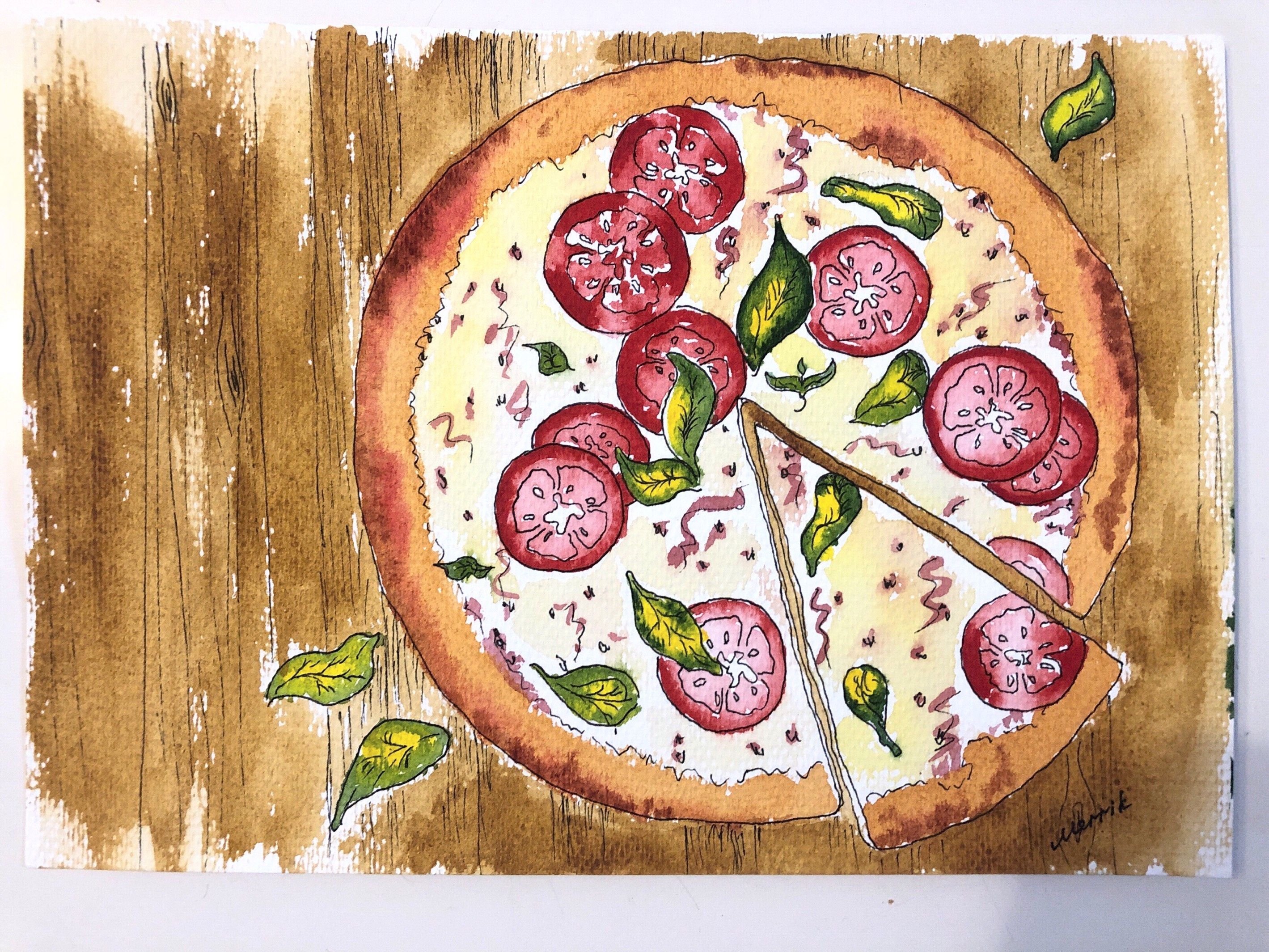 Пицца скетчинг акварель