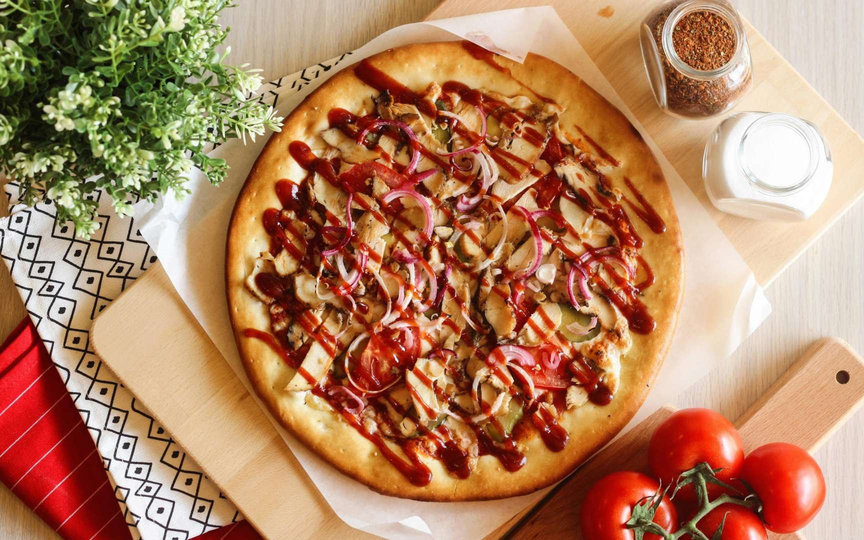 ![Пицца на деревянном фоне]()