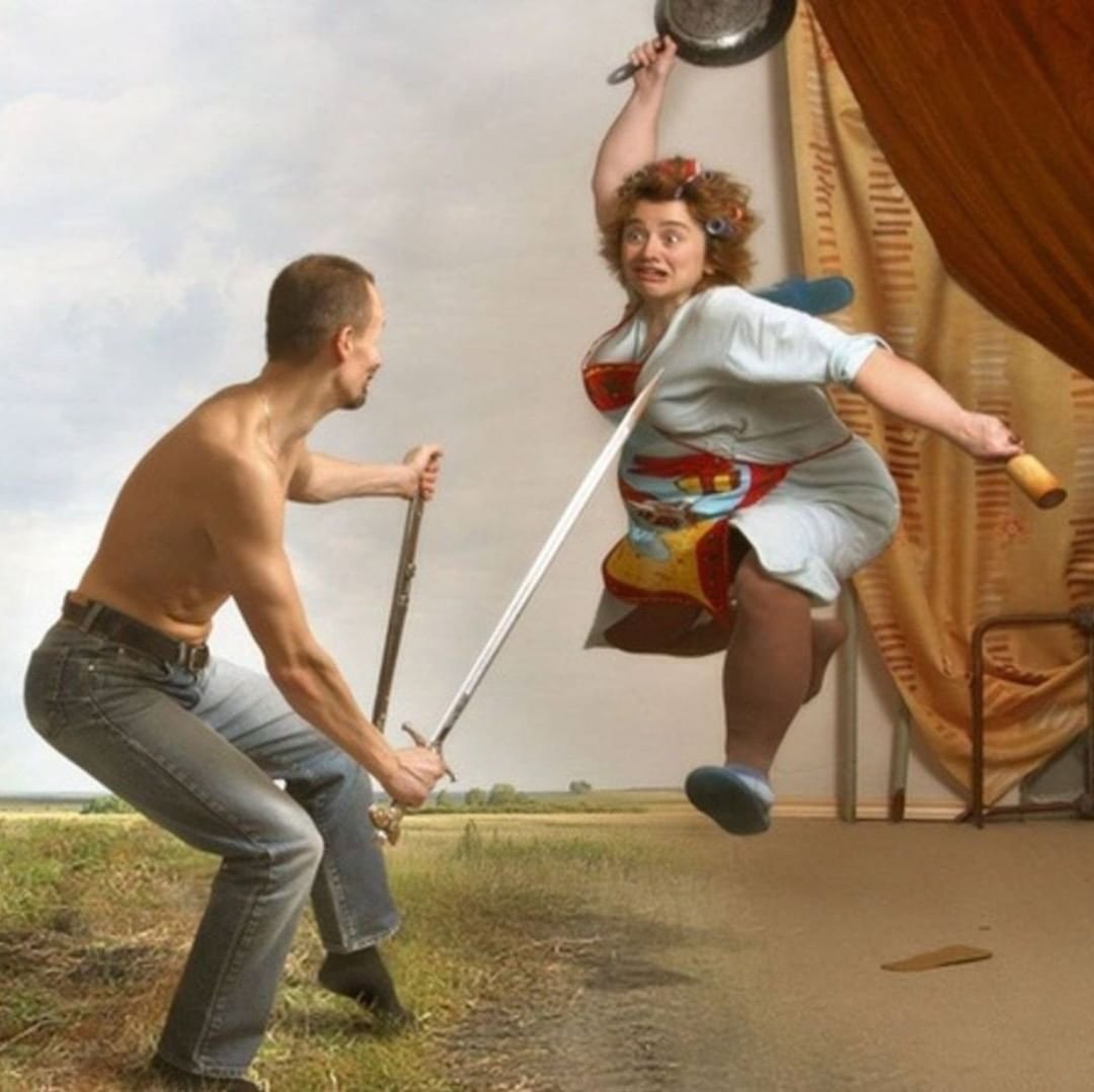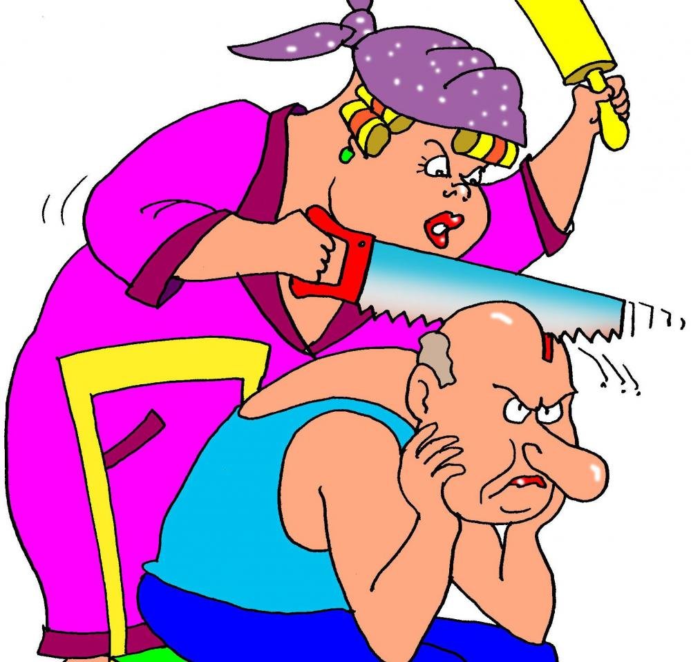 Женщина бьет мужчину карикатура