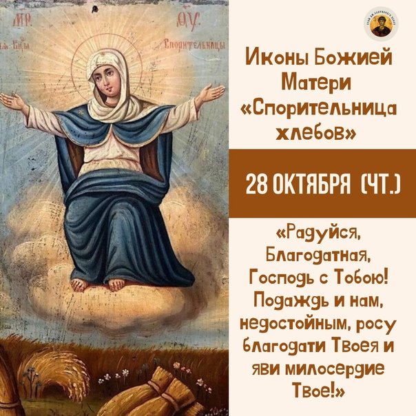 ![28 Октября – день памяти иконы Божией матери "Спорительница хлебов".]()