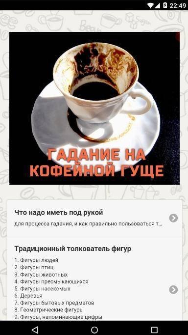 ![Гадания на кофейной гуще толкование символов]()