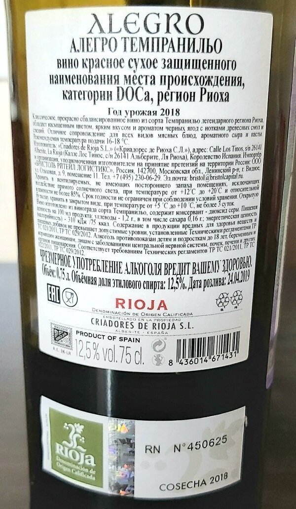 ![Испанское вино Риоха красное сухое Аллегро]()