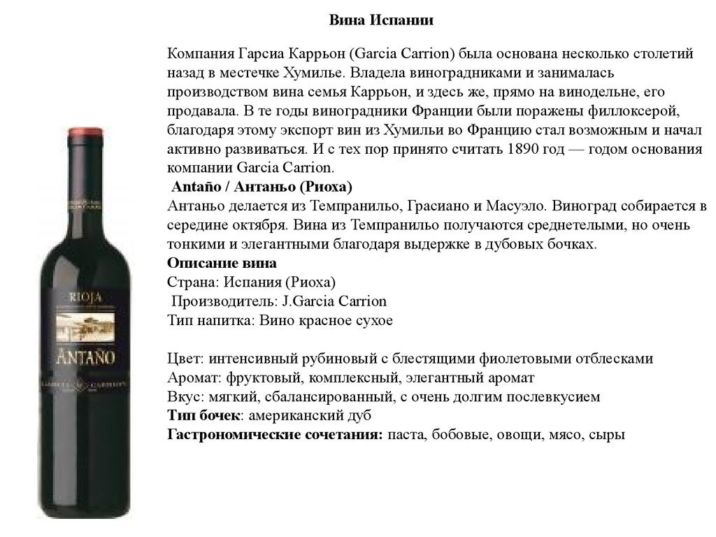 Описание вина