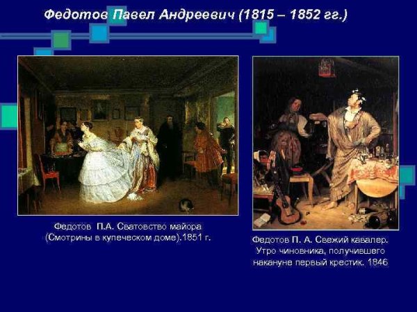 ![Павел Федотов, «сватовство майора» (1848), Третьяковская галерея]()