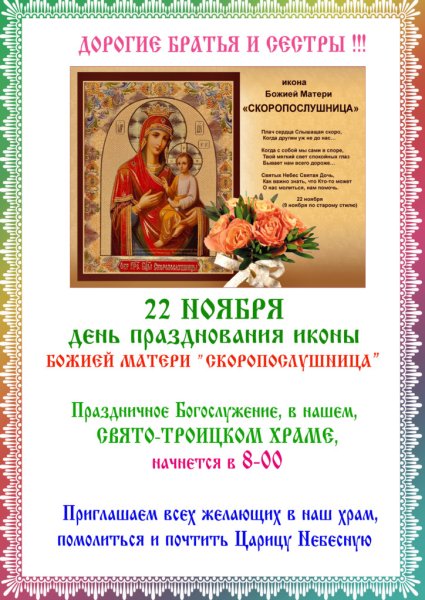 ![22 Ноября праздник иконы Божьей матери Скоропослушница]()