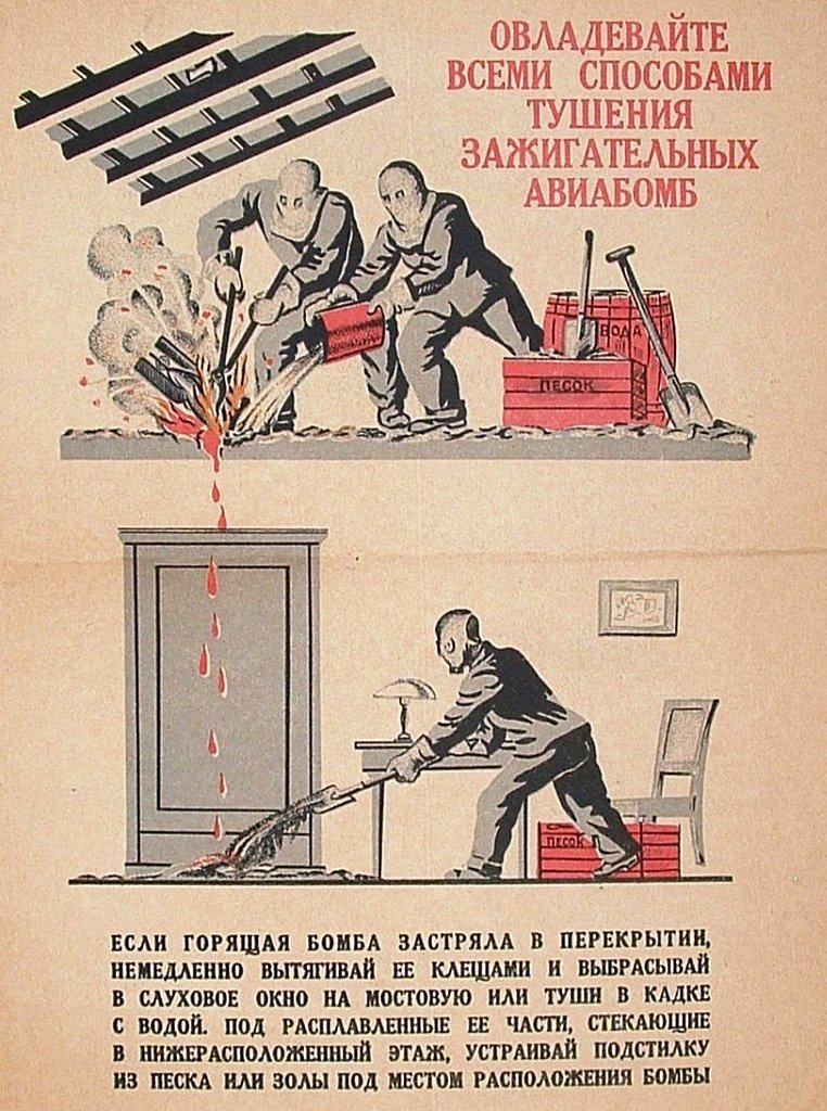 ![Плакаты борьба с зажигательными бомбами]()