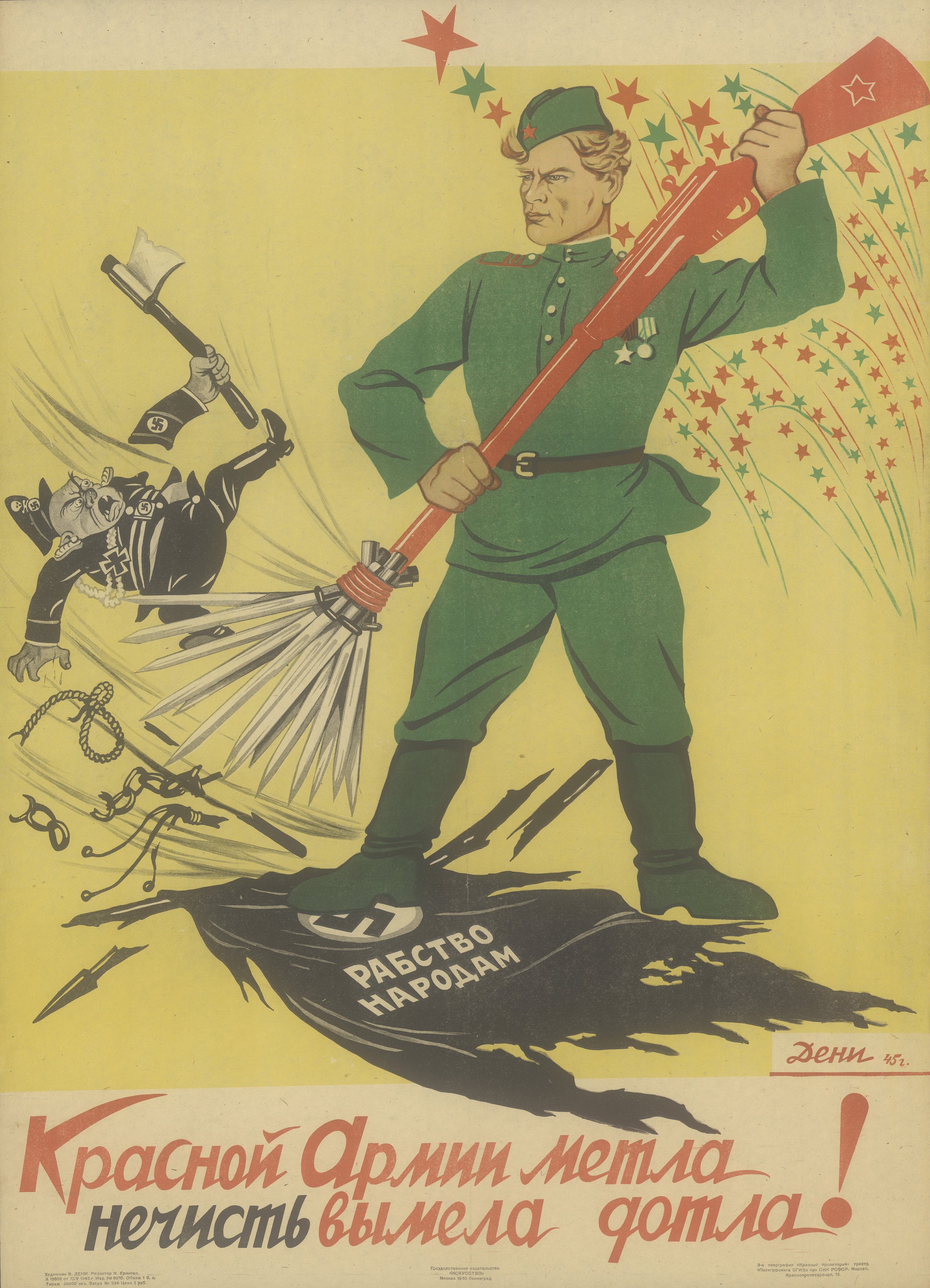 ![Красной армии метла Дени плакат]()