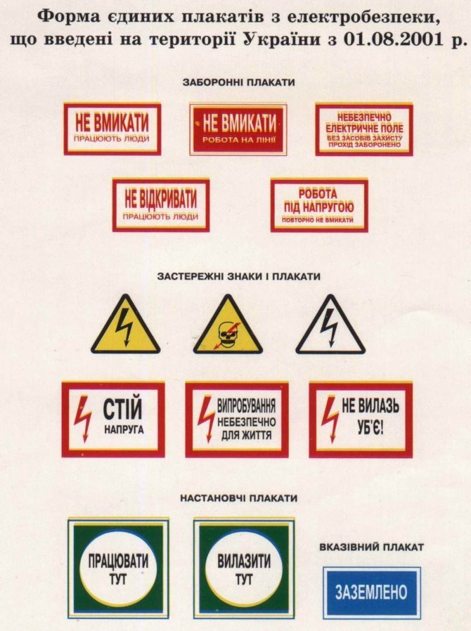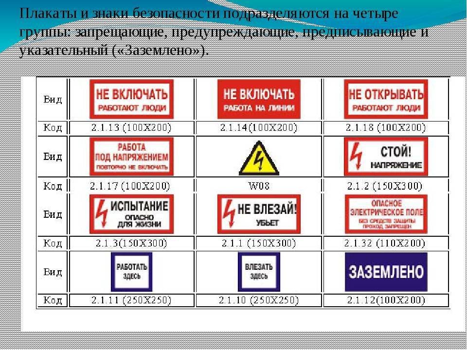 Классификация знаков и плакатов безопасности в электроустановках