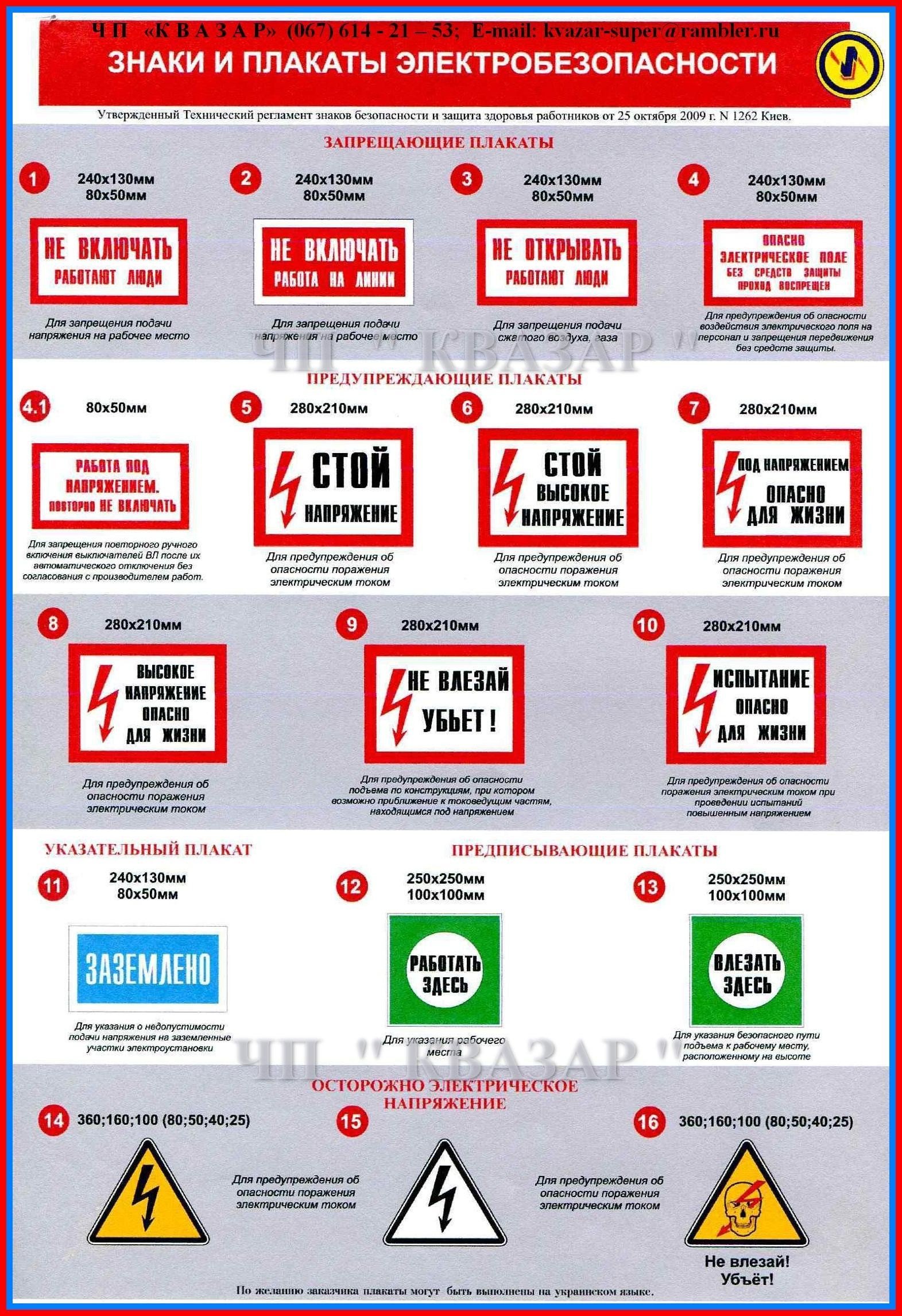 Знаки и плакаты предупреждающие в электроустановках