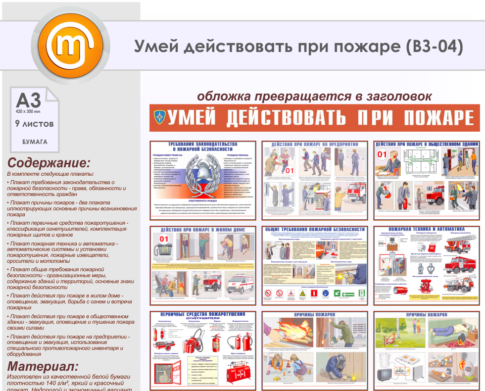 ![Умей действовать при пожаре плакаты 10 листов а3]()