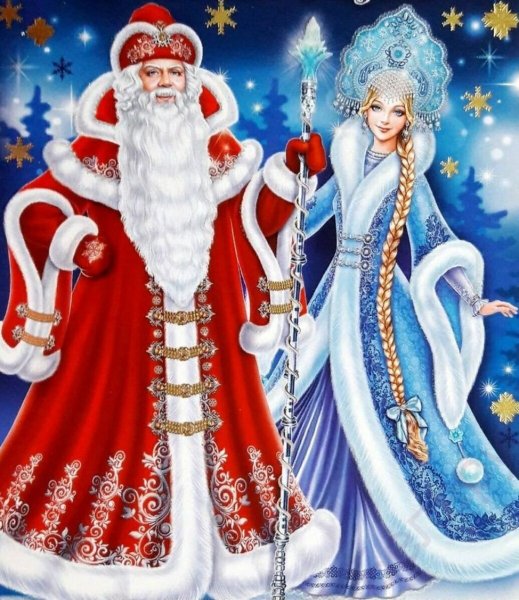 ![Открытки с дедом Морозом и Снегурочкой для детей]()