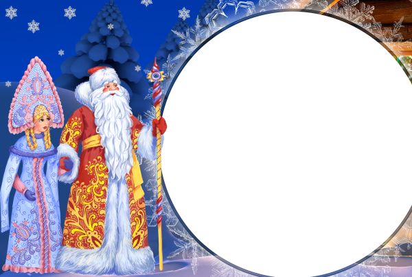 ![Новогодний фон с дедом Морозом и Снегурочкой]()