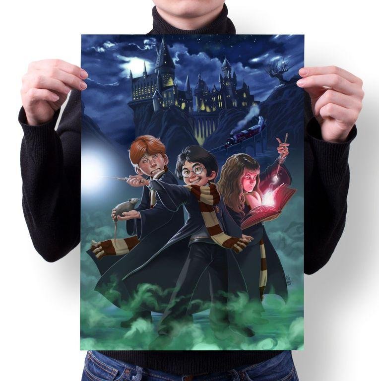 Погрузитесь в магический мир Гарри Поттера с помощью нашего красочного плаката! Визуально захватывающий и детально проработанный, он позволит вам окунуться в приключения юного волшебника. На плакате вы найдете изображение Гарри Поттера со своими верными друзьями Роном Уизли и Гермионой Грейнджер. Они готовы отправиться на новые задания, решать загадки и сражаться с темными силами. Великолепная графика и живописные детали позволят вам насладиться удивительным миром магии и приключений. Этот плакат станет отличным дополнением к вашей коллекции или прекрасным подарком для фанатов Гарри Поттера.