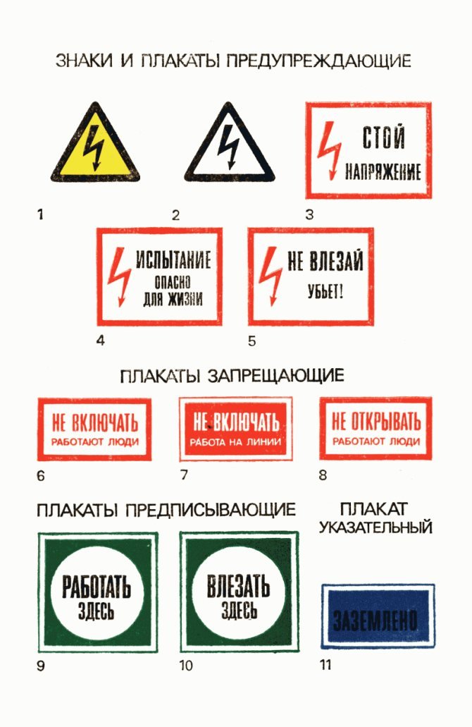 Виды плакатов по электробезопасности до 1000 в