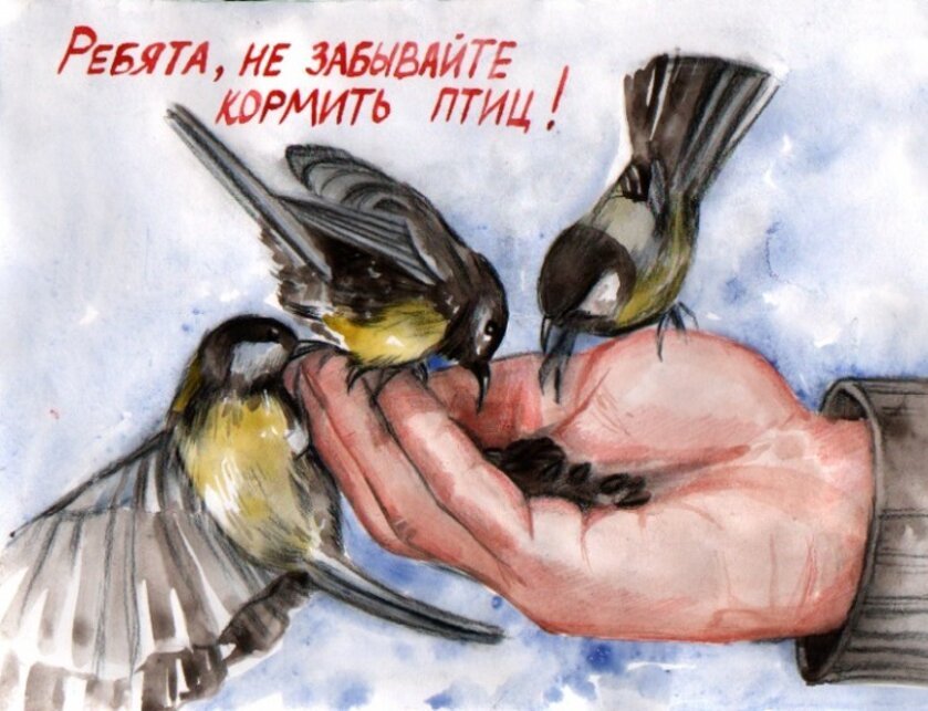 Рисунок на тему Покормите птиц