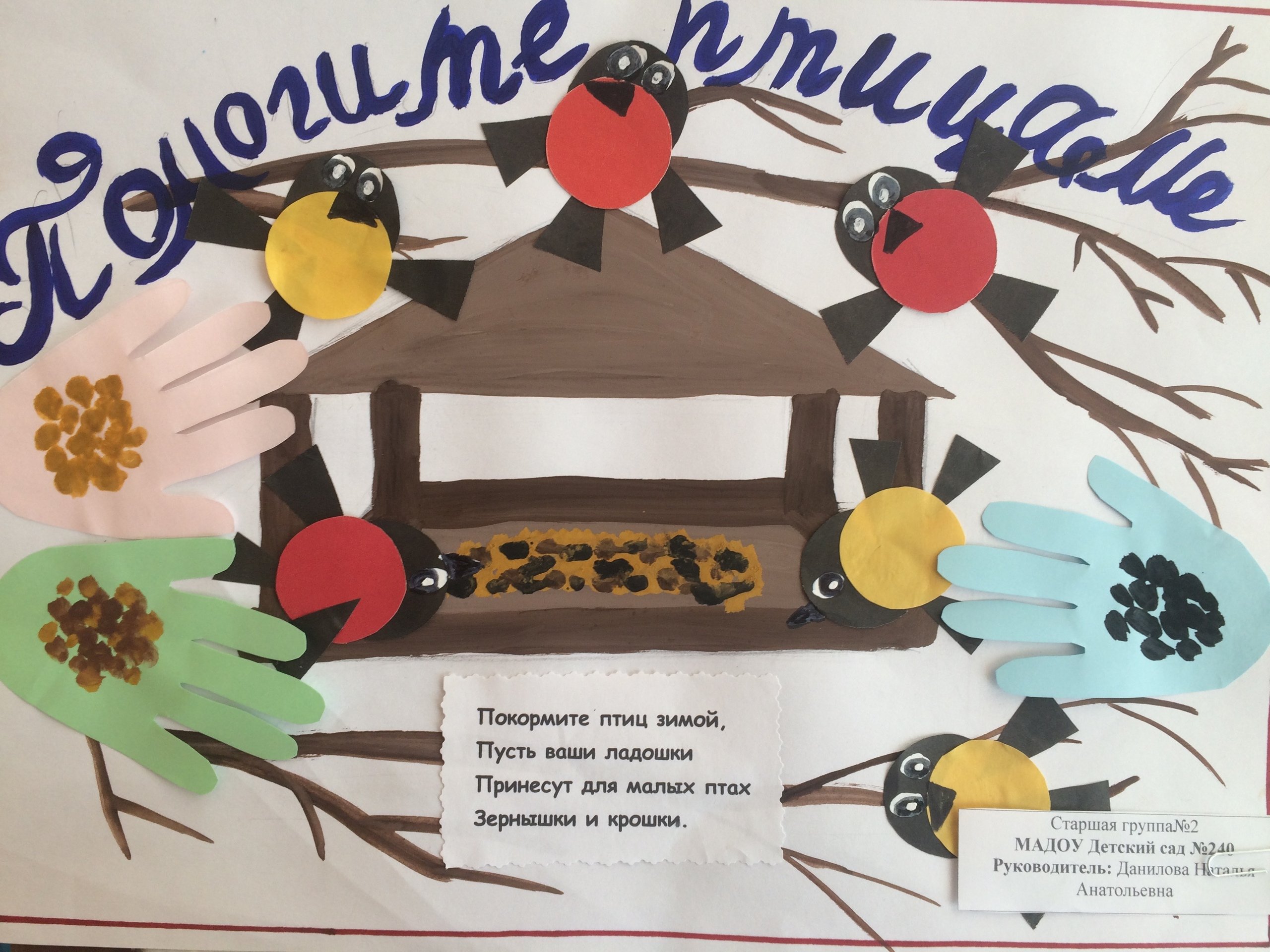 ![Покормите птиц зимой плакат для детского садика]()