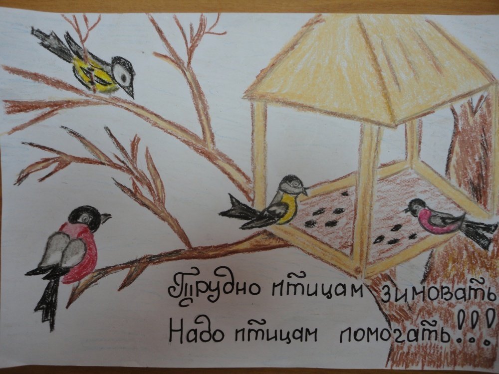 ![Рисунок на тему Покормите птиц]()