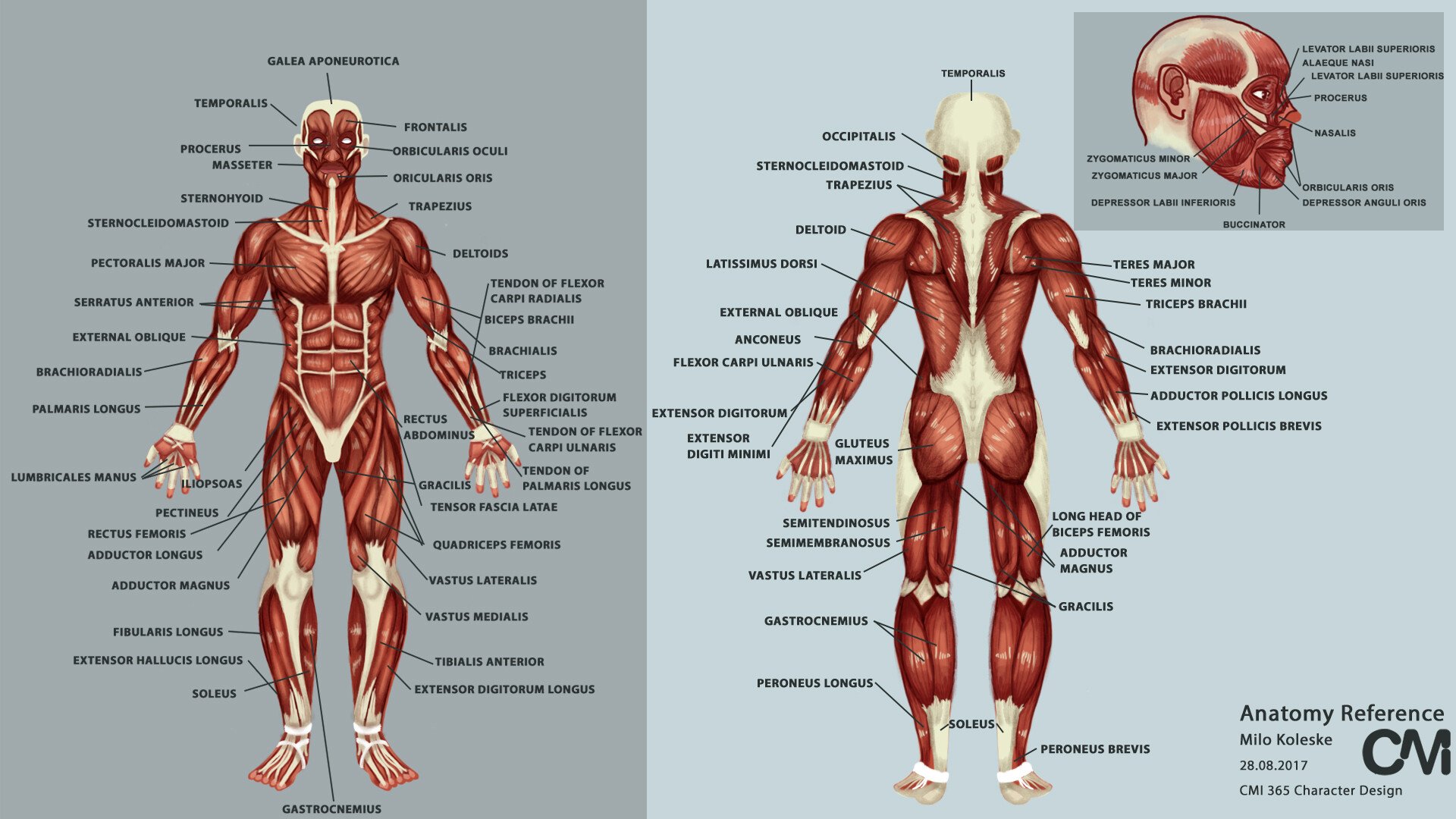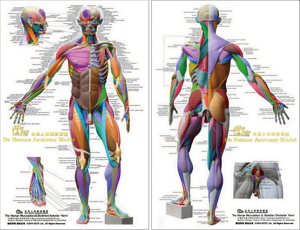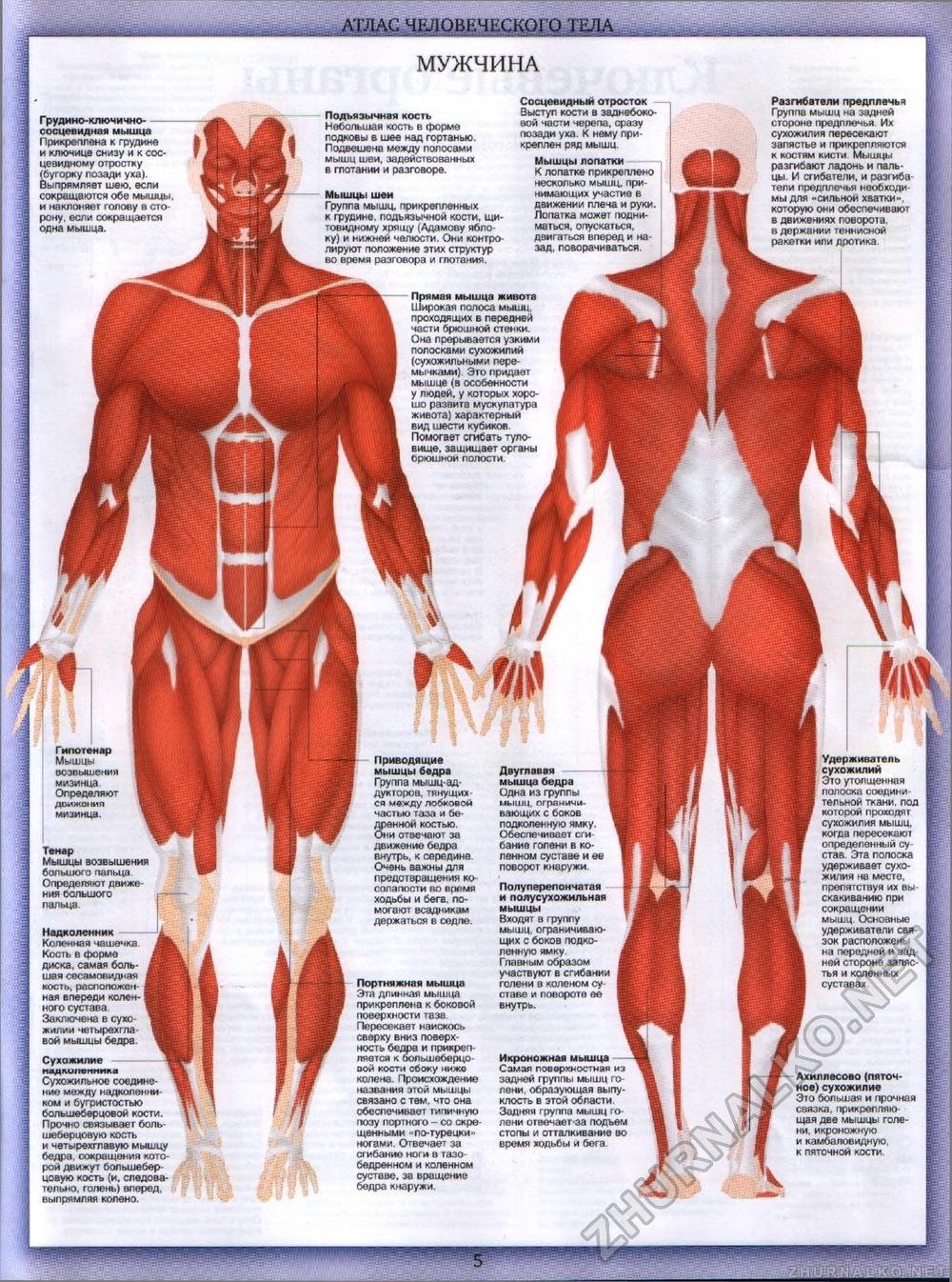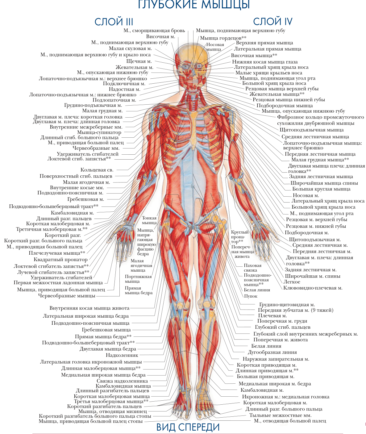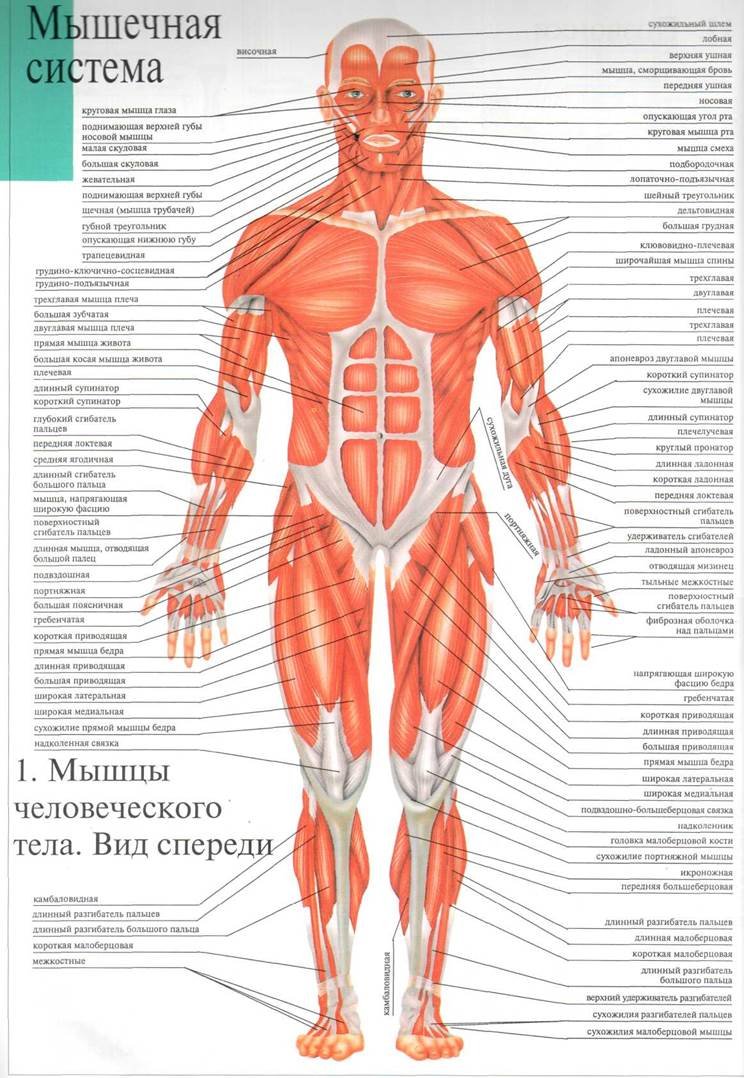 ![Поверхностные скелетные мышцы вид спереди и сзади]()