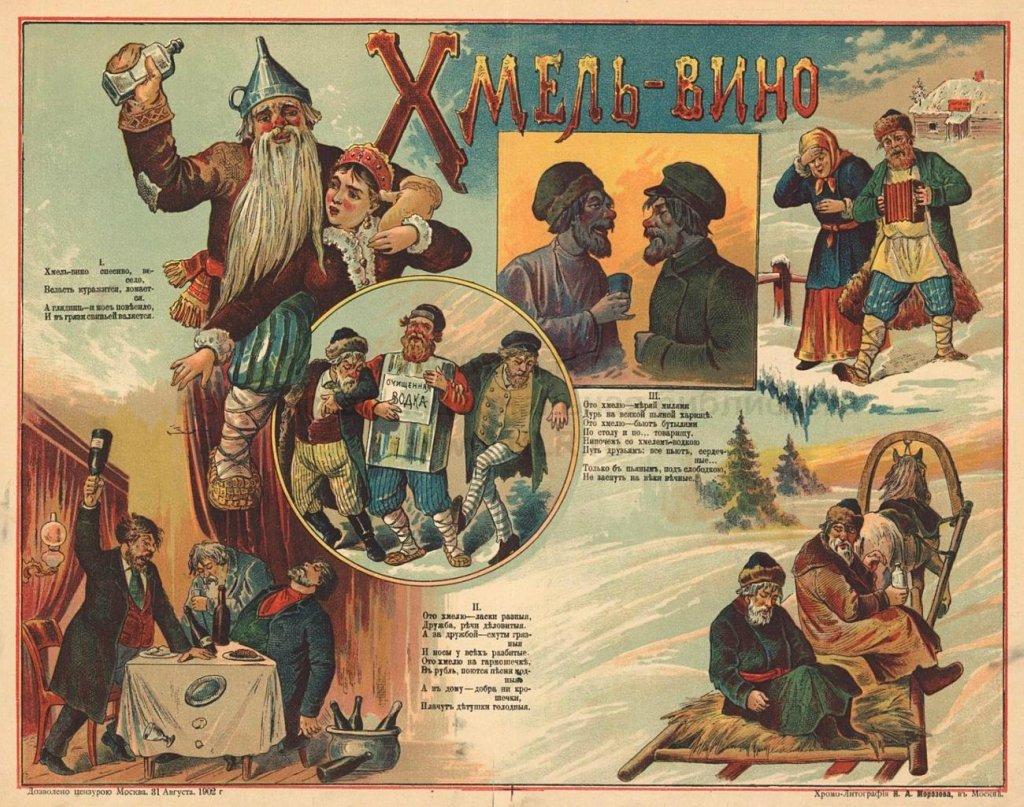 ![Антиалкогольный плакат в Российской империи]()