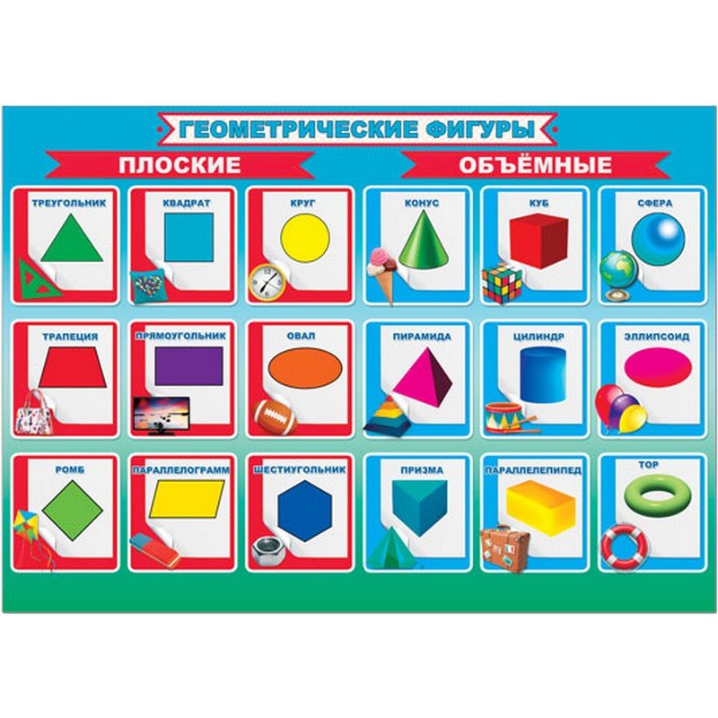 Плакат геометрические фигуры для дошкольников