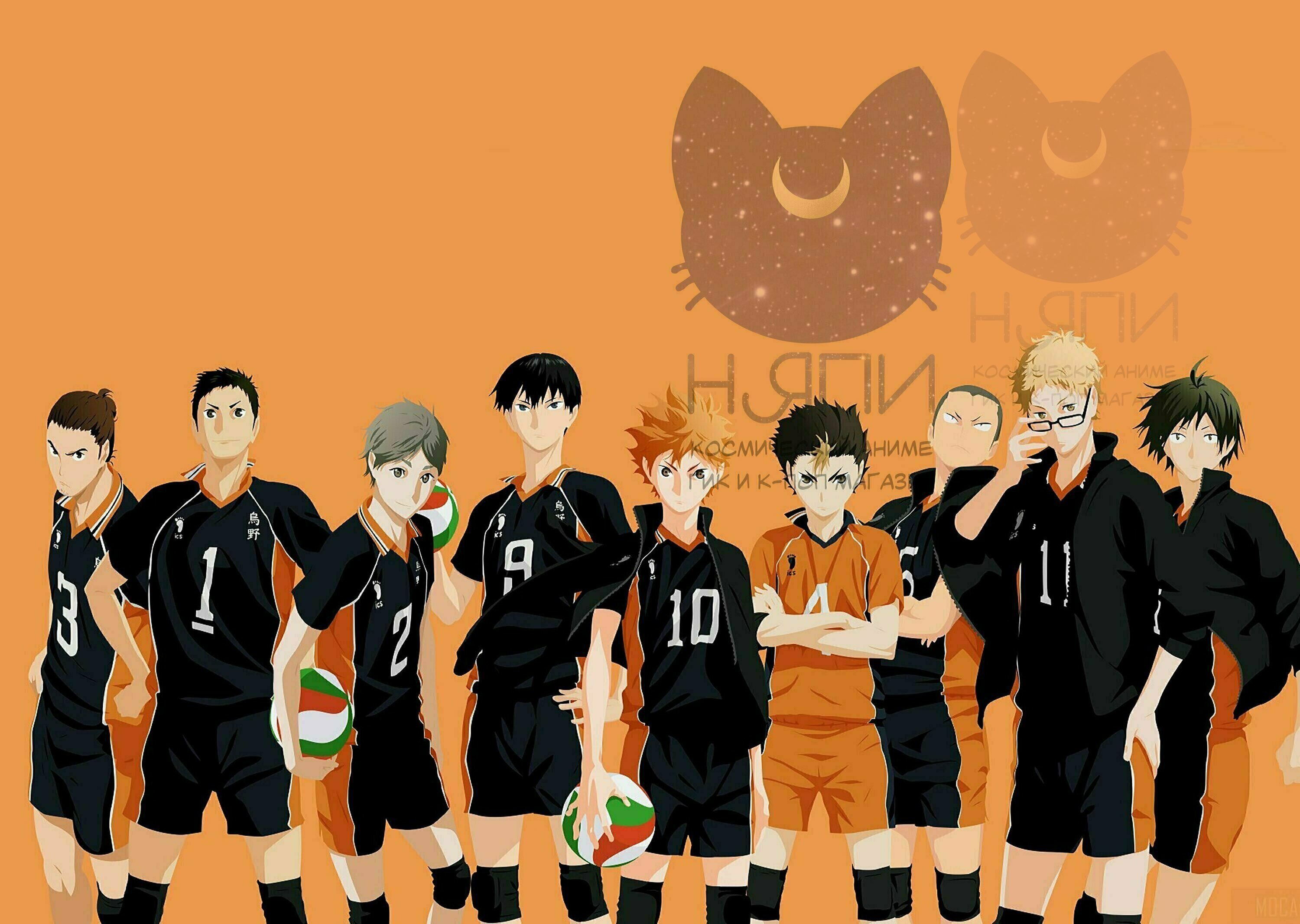 ![Аниме волейбол команда Карасуно]()
